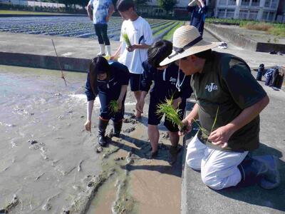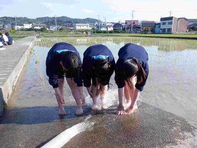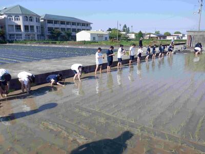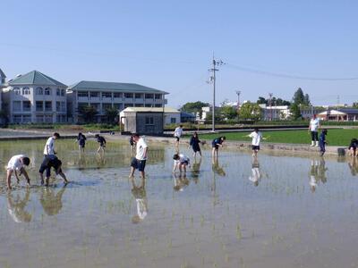 6月11日(水)放課後に、本校西農場にて田植え(モチ米)体験をしました。生産技術科以外は、授業で田植えを実施しないのため、今回参加した16名は、とても良い経験となりました。1時間という短い時間でしたが、15列分植えることができました。生産技術科の先生方、ありがとうございました!