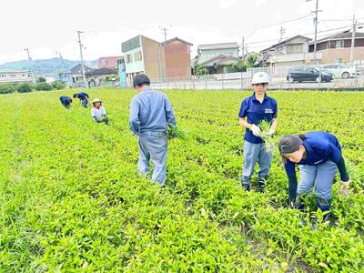 5月17日(土)8:00から、藍場浜公園周辺で開催された「とくしままちなか花ロードproject」に参加しました。大雨の中、300人ほどの方が集まり、4万株を超えるペチュニアを定植しました。本校からは、アグリクラブ総勢26名がたくさんのペチュニアを定植しました。最後に振る舞っていただいたうどんで、体も温まりました。ありがとうございました。