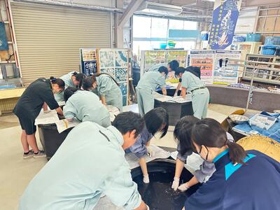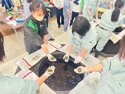 3月24日(月)放課後に、今年度最後の活動で藍染め体験を行いました。それぞれが、木綿のハンカチに思い思いの柄を施すことができました。来年度もたくさん活動していきます!