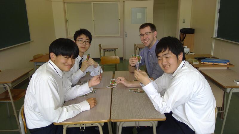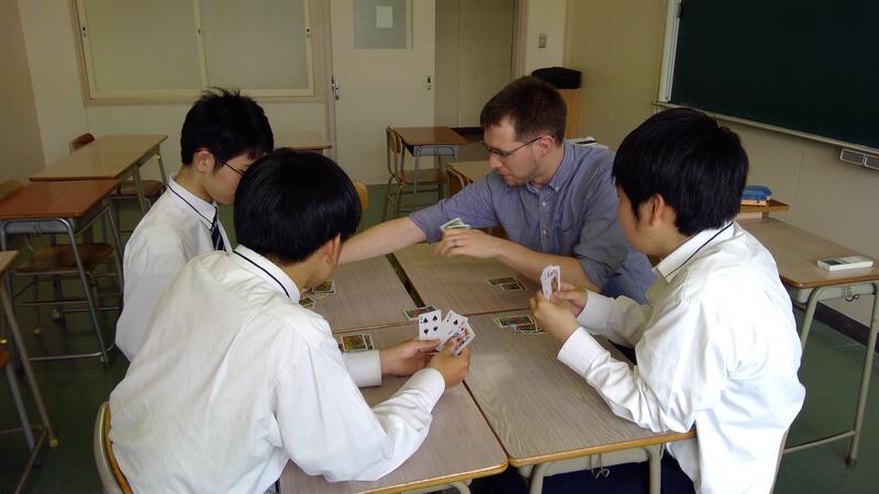 ニュージーランド出身のマイケル先生と、楽しく活動しています。ゲームやクイズをしながら、英語の表現や外国の文化に触れることができています。マイケル先生が教えてくれるカードゲームは、日本のものとはルールが違ってとても新鮮でした。英語が苦手でも、大丈夫です。