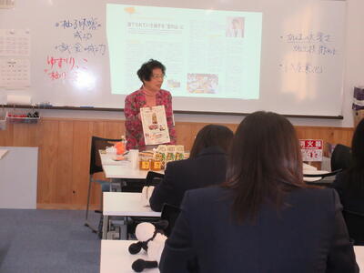 1月20日(月)。ゆず味噌製造販売等をおこなっている「柚りっ子」顧問の三澤澄江さんが講演に来てくださいました。
