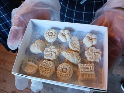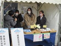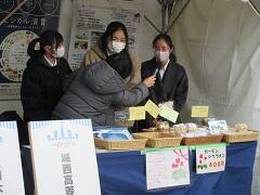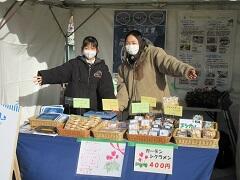 食品科学科のマドレーヌ・フィナンシェ、植物活用科の観葉植物・藍染め商品、アグリビジネス科のクッキー・パウンドケーキ等、各学科の専攻で製造している商品を食品科学科3年生の5名が販売しました。9時から販売を開始しましたが、どの商品も好評で昼過ぎには全商品完売しました。ありがとうございました。